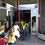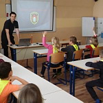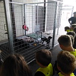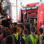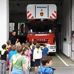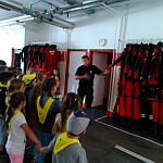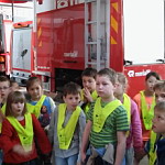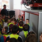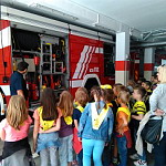 Obisk gasilske postaje je na učence 1. a in b razreda pustil veliko navdušenje za ta poklic. Ko smo po stopnicah odšli v višje nadstropje, smo v razstavnih vitrinah videli znake različnih gasilskih enot in pokale. Gasilec nam je s pomočjo fotografij in filmčkov povedal, kako je potrebno ravnati v primeru požara ali kakšnih drugih nesrečah. Ogledali smo si garažo z gasilskimi reševalnimi vozili, videli smo čoln in obnovljen, skoraj 90 let star gasilski avto. Poskusili smo gasiti in na glavo smo si nadeli čelado. Aja, pa gasilec se je spustil po drogu iz zgornjega nadstropja v garažo. Ali ste vedeli, da imajo pri gasilcih tudi dva psa?