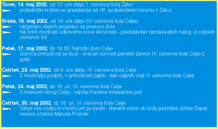 V najlepšem pomladnem mesecu praznuje IV. osnovna šola Celje svoj štirideseti rojstni dan. Ob jubileju želimo, da bi se nam na našem potovanju skozi spomine v sončno prihodnost pridružili vsaj na eni izmed prireditev in praznovali skupaj z nami.