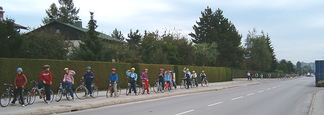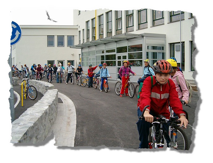 Izpušni plini teh motorjev so danes tudi glavni onesnaževalci mest in primestnih naselij. S hrupom in velikimi hitrostmi ogrožajo mlajši in starejši del prebivalcev.Večja uporaba koles bi število motornih vozil v mestih zmanjšala. In kako je bilo? Po jutranjih ugotovitvah, da na cestah kolesarjev skoraj ni, je pa veliko osebnih vozil, smo se odpravili na pot. Petinštirideset kolesarjev je z upoštevanjem varnostne razdalje naredilo skoraj 400 m dolgo kolono. V spremstvu policistov smo vzbujali veliko pozornost. Ta pomembnost in opaženost nam je bila všeč, zato smo navdušeno poganjali kolesa po ravnem in v hrib. Izkušnje na terenu so nam pokazale, da gremo na pot samo z brezhibnim kolesom, dobro čelado, kondicijsko pripravljeni, da se izogibamo steklenim razbitinam in da krmilo vedno držimo z obema rokama! Kaj smo rekli na koncu poti? |