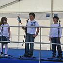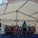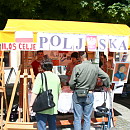 Prav na vsaki stojnici so nama tudi prijazno povedali, kako na njihovi šoli razvijajo prostovoljno dejavnost, kar je bila osrednja tema letošnjega projekta. Povsod skrbijo za to, da starejši učenci pomagajo mlajšim, skrbijo za čisto okolje, obiskujejo starejše krajane in jim prinašajo hrano, sodelujejo z domovi starejših, zanje pripravljajo kulturne prireditve, marsikaj pa se od njih tudi naučijo – že skoraj pozabljenega pletarstva in lončarstva, na primer. Z zbiranjem zamaškov pomagajo tistim, ki tovrstno pomoč potrebujejo, s socialnimi igrami izboljšujejo odnose med generacijami, na I. gimnaziji v Celju pa so ravno na dan, ko smo postavili Evropsko vas, pripravili tudi dobrodelni koncert pevskega zbora za svojega bivšega učenca.