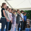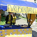 Dekleta pri stojnici Prestolnice Evropske unije so nama povedala, da so takrat, ko so imeli pouk v soboto, naredili največ za Evropsko vas. Pripravili so recepte in slovarje, srečali pa so se tudi s češkim veleposlanikom.