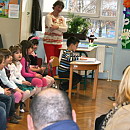 V prvih marčevskih dneh so učenci 2. b povabili v šolo svoje starše in stare starše ter zanje pripravili prijeten uvod v pomlad. Mamice so razveselili s pesmicami o pomladi in o mamah, predstavili so se z glasbenimi točkami, očke pa so presenetili s svojimi iskrivimi opisi, ki so nastali pri pouku slovenščine.