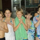 Ko smo v ponedeljek prišli na tečaj plavanja, smo najprej imeli testiranje v malem bazenu. Spoznali smo učitelje plavanja Dašo, Neli, Aleša in Mateja. V torek smo se naučili plavati kravl, potem pa še žabico. V sredo smo skakali v vodo, seveda v velikem bazenu. Naučili smo se skočiti na glavo in plavati 10 minut brez počitka. V petek smo plavali hrbtno. Kar prehitro je prišel zaključek, ko smo dobili diplome.