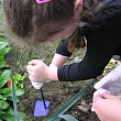 Na fotografijah vidite s kakšno vnemo učenke in učenci sadijo česen, opazujejo in spoznavajo rastline ter žuželke, ki jih obiskujejo.