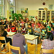 Ob svetovnem dnevu knjige smo povabili učence prve triade, da se nam pridružijo na "večeru" branja. Brali smo med 18. in 21. uro. Pričeli smo s predstavitvijo dveh pisateljev. Prva pisateljica je naša učenka Vanesa, ki je na natečaju Z domišljijo na potep dobila nagrado - izdali bodo njeno knjigo. Vanesa nam je iz nje prebrala dva odlomka. Nadaljeval je naš bivši učenec, g. Sebastjan Bezgovšek, očka naših dveh učenk, ki je izdal knjigo z naslovom Pravljica zate. Knjigo sta prebirali ga. knjižničarka in ga. ravnateljica. Nato smo se razdelili v skupine. Eni so brali svoje knjige, druga skupina je brala knjigo Piki Jakob, tretja skupina Postani kraljevič, četrta je prebirala knjige Svetlane Makarovič, peta pa je brala Zverjasca. Na zaključku so učenci predstavili svoje delo v skupinah, večer pa so opisali tako: zanimivo, bralno, zabavno, dobro, super, fino, drugače kot doma ali v šoli.