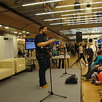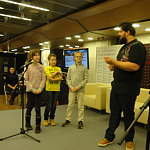 Obiskal sem prostor, kjer so prodajali knjige Primoža Suhodolčana, saj je to moj najljubši pisatelj. Zelo sem bil vesel, da sem se z njim tudi srečal. Moja najlubša knjiga je prav njegova Kolesar naj bo, v kateri Ranta poskuša leteti v svoji sobi. (Denis)