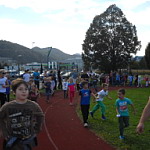 V tednu otroka smo, v petek, 10. 10. 2014, oddelki podaljšanega bivanja poskrbeli za dve različni dejavnosti, ki smo ju združili v prijetno medgeneracijsko druženje. S sošolci, sorojenci, starši in starimi starši smo druženje pričeli z ogrevanjem za »TEK PODNEBNE SOLIDARNOSTI«. Po mnogo pretečenih krogih pa smo nadaljevali s prijateljskim druženjem ob kuhanem kostanju, pečenih jabolkah in krompirju. Z jesenskimi sadeži in lončkom sadnega soka smo se še dolgo družili in klepetali.