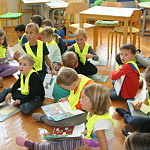 Učenci na naši Četrtki, nadvse radi beremo in obiskujemo knjižnico. Še posebej se veselimo obiskov prvošolci, saj si lahko sami izbiramo knjige in jih doma skupaj s starši, dedki in babicami ter bratci in sestricami gledamo in beremo. Ob dnevu pismenosti smo v šolski knjižnici dobili knjigo Ostržek bere za bralno značko (darilo Bralne značke Slovenije) in izkaznice, s katerimi si bomo vse leto pridno izposojali knjige. Saj veste - vsaj deset minut branja na dan odžene skrbi stran!