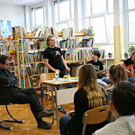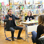 Ob zaključku bralne značke smo letos v goste povabili dr. Toneta Kregarja, pisatelja, pesnika, direktorja Muzeja novejše zgodovine Celja, avtorja mnogih razstav, publicista in seveda pevca skupine Mi2. Zanimiv in zabaven pogovor z njim, ki ga je vodila Vanesa, so s svojim nastopom popestrili naši učenci (Tit, Tinkara, Vanesa, Inja, Katrin, Nika, Ana Mari in Sanja). Vsi bralci smo se strinjali, da je "mladost sladka kot med", razšli pa smo se tako, da smo skupaj z njim zapeli legendarno pesem Odhajaš.
