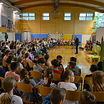 V torek, 15. maja, nas je na zaključku bralne značke obiskal najbolj plodovit slovenski pisatelj Ivan Sivec. Napisal je kar 146 knjig in je že poldrugo desetletje vedno med prvimi tremi najbolj branimi avtorji. Učenci 8. a so se v uvodu predstavili z odlomkom iz njegove knjige Zgodbe o celjskih grofih in knezih, pisatelj pa nas je razveselil z resnično pustolovsko zgodbo o zlatokopih na Aljaski in ljubezenskim utrinkom iz njegovega otroštva.