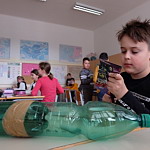 Učenci 4. in 5. razreda smo preživeli ponedeljkov dan po zimskem oddihu v duhu astronomije. Svoje znanje o planetih smo poglobili in si pridobili mnogo novega s spoznavanjem vesoljske postaje in astronomov, ki so bivali na njej. Ogledali smo si planetarij, ki nas je prav ponesel v vesolje in smo si tako lahko pobliže ogledali ozvezdja in osončja. Najboljše pa nas je čakalo na koncu, ko smo lahko preizkusili, kako daleč ponese rakete, ki smo jih izdelali sami.