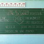 Ob mednarodnem dnevu miru smo se s svojimi dejavnostmi vključili v UNESCO projekt »POZDRAV PTIC MIRU« v organizaciji OŠ Lava. Razmišljali smo o miru, kaj nam mir pomeni in kako ga ohranimo zase in druge. V okviru TD smo izdelovali ptičke, jih opremili z mislimi o miru, starejše učenke pa so jih na sobotno dopoldne v centru mesta delile mimoidočim.