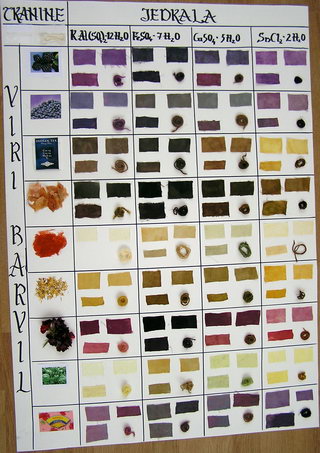 Iz različnih virov smo pripravili naravna barvila, ki smo jih nato uporabili za barvanje lana, bombaža, svile in volne... In spodaj si lahko ogledate rezultate našega dela.
