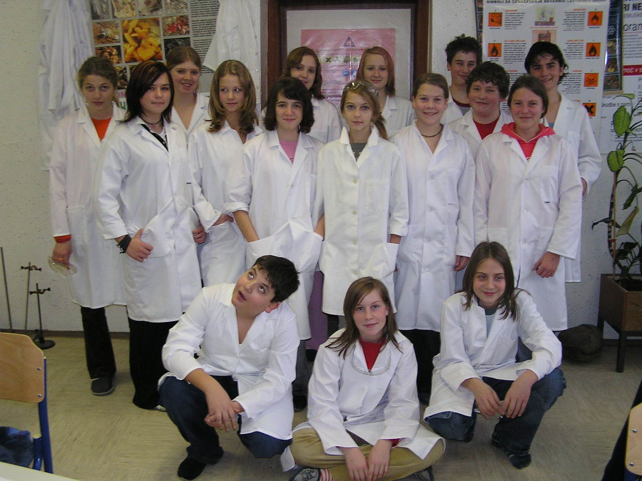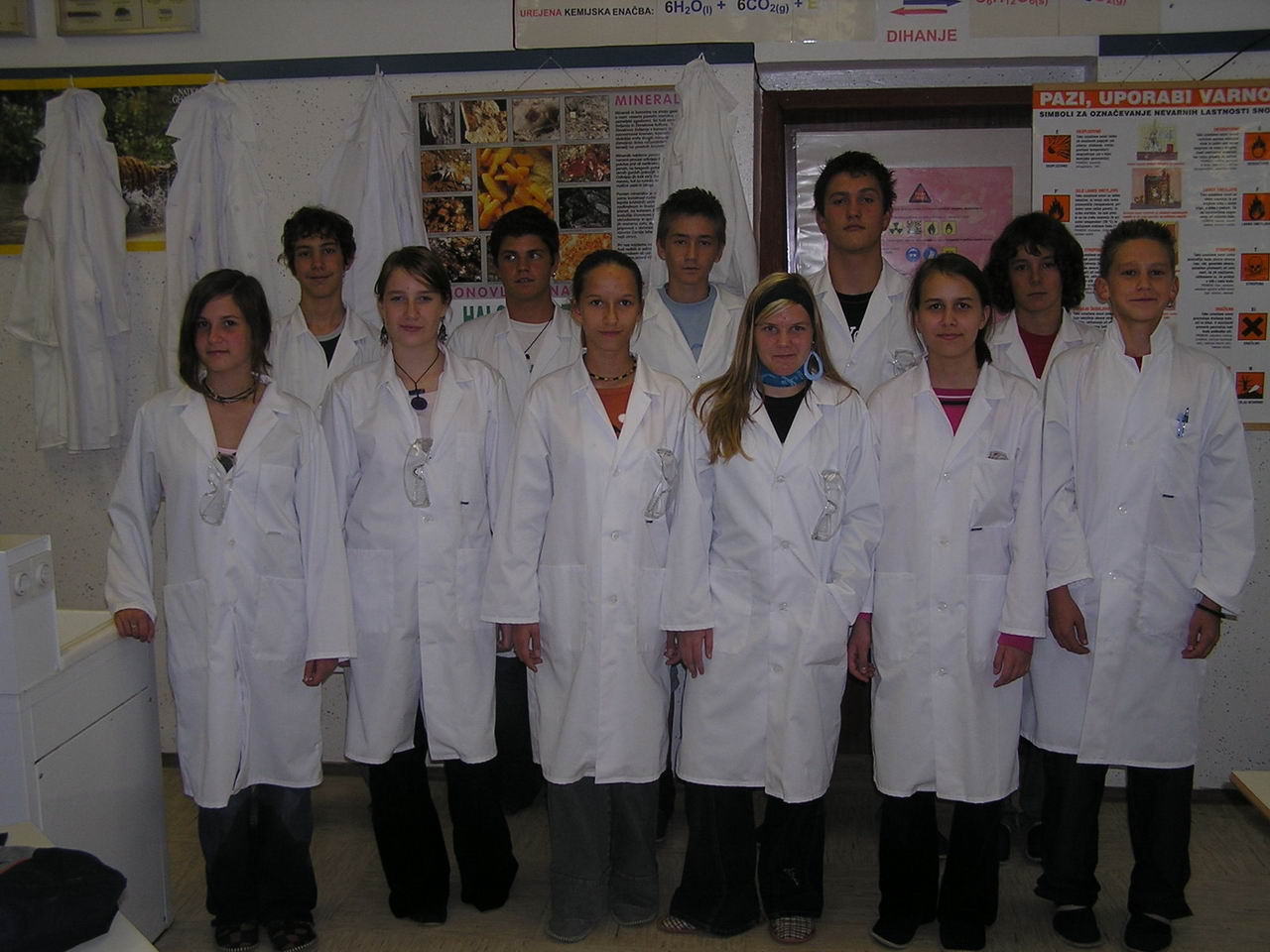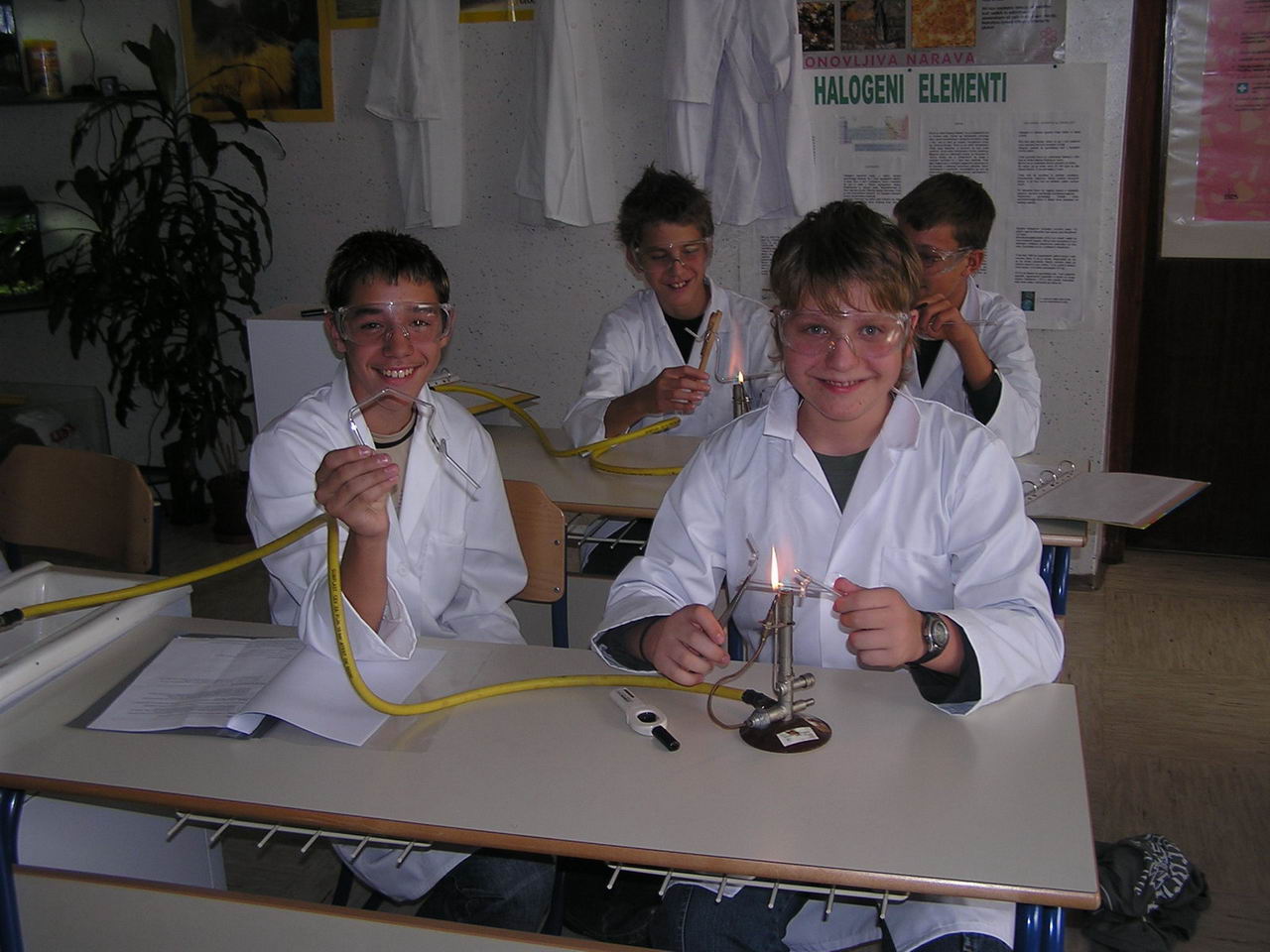Zato tudi na naši šoli namenjamo kemiji veliko pozornosti in poleg obveznega predmeta kemije ponujamo učencem 8. in 9. razredov še dva izbirna predmeta: Poskusi v kemiji in Kemija v življenju.