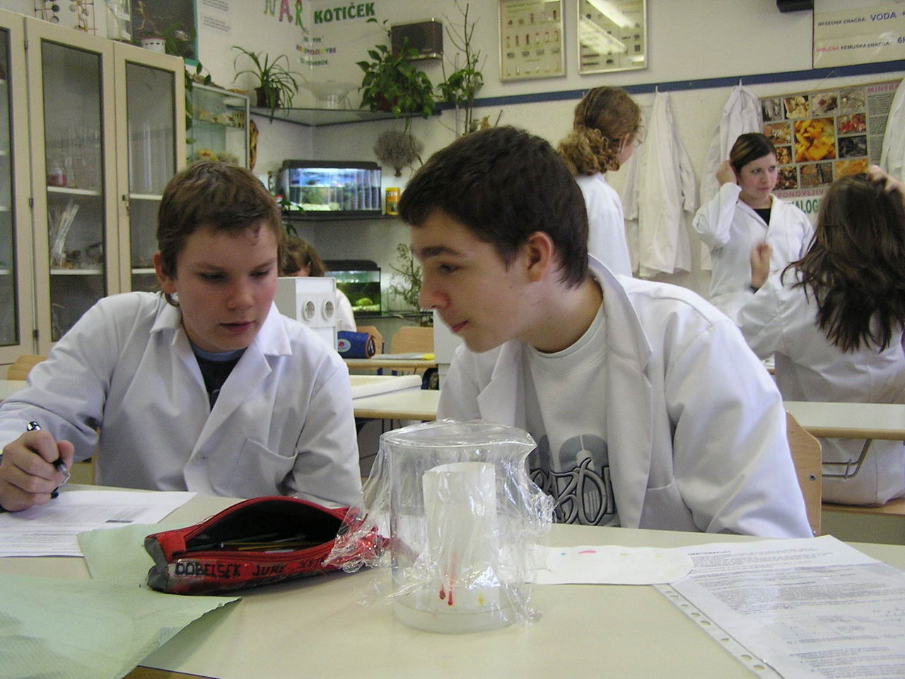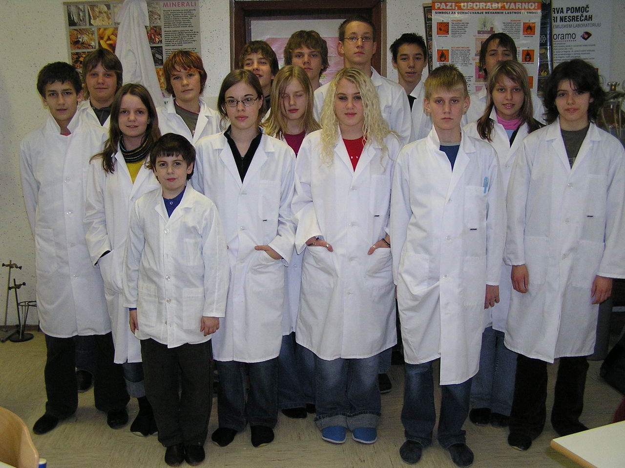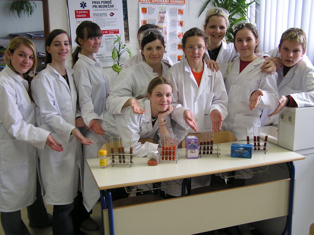 Zato tudi na naši šoli namenjamo kemiji veliko pozornosti in poleg obveznega predmeta kemije ponujamo učencem 8. in 9. razredov še dva izbirna predmeta: Poskusi v kemiji in Kemija v življenju.