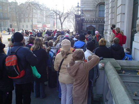 Vhod v 10 Downing street, kjer je dom britanskega premierja