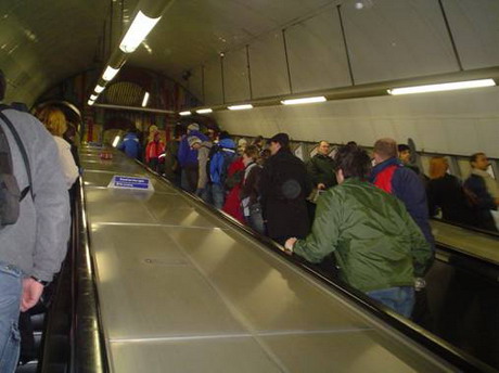 Labirinti in tekoče stopnice v treh nadstropjih podzemne železnice.