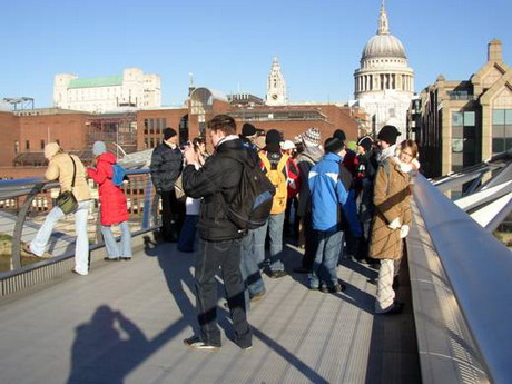 Najnovejši most čez Temzo (Millenium Bridge), s St. Paul's Cathedral v ozadju.
