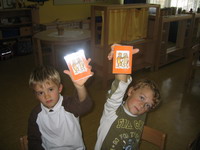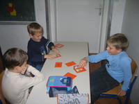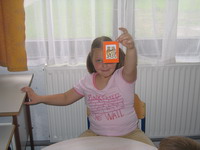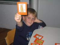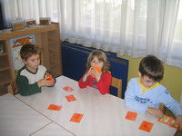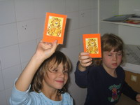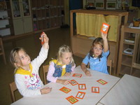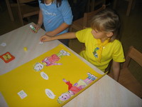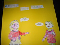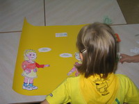 Izdelujemo plakate, ki jih kasneje kot didaktični material uporabljamo pri učenju pesmic in preprostih dialogov.