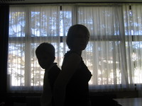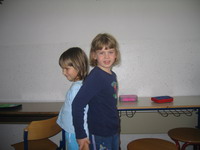 Stand back to back. (Stoj s hrbtom proti hrbtu.)