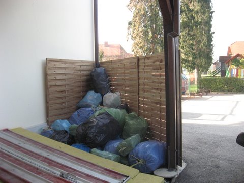 V zato posebej namenjenem prostoru za šolo nam lahko pomagate zbrati čim več odpadnih plastenk, ki pa morajo biti stisnjene in zvezane v vrečah, da se ne razsujejo.