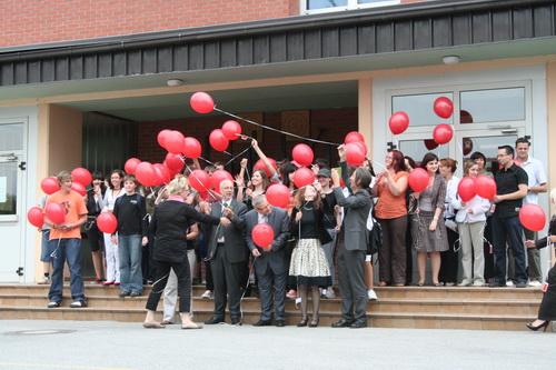 Skupaj z učenci smo pripravili kratek program, kjer smo pokazali, kaj vse počnemo z novo opremo. V zrak pa smo ob pesmi 99 Luftballons, ki jo poje znana nemška pevka Nena, v zrak spustili balone kot simbol prijateljstva in medkulturne povezanosti. Na balone smo pripeli kartice z našimi naslovi.