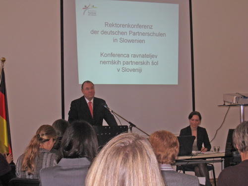 V četrtek, 19. novembra 2009 je v Ljubljani potekala konferenca ravnateljev nemških partnerski šol. Udeležili smo se je ravnateljica šole, mag. Marica Horvat, predsednik Sveta staršev, Danijel Žižek in koordinatorka PASCH projekta na šoli, Lidija Pelcl Mes.