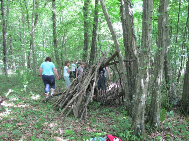so si udeleženi po skupinah poiskali primerni prostor in si s pomočjo vej in