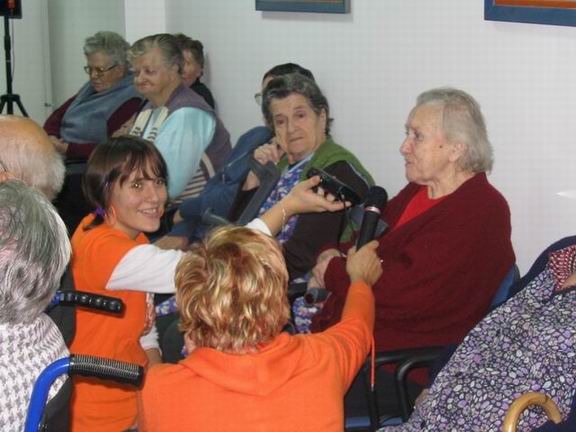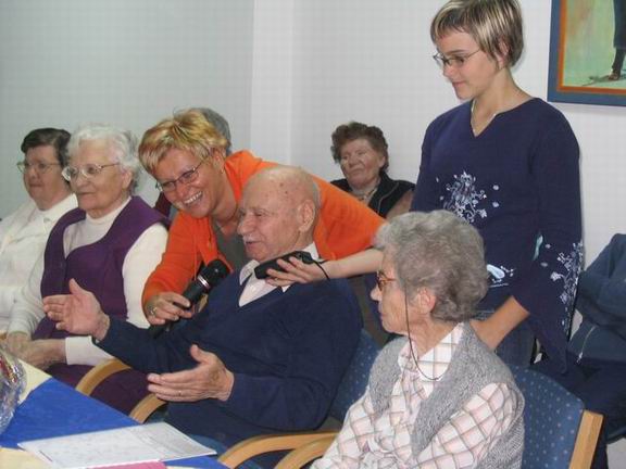 Potem je pogovor stekel, a vsi so bili nekam zadržani, verjetno zaradi kamere. Nekdo je celo rekel, da ne bo več kaj povedal, zaradi vse te mašinerije. Ker se je starostnikom veliko zatikalo, smo vskočili mi in tako je vzdušje postalo prijetnejše. Oni so izvedeli nekaj stvari iz našega življenja, mi pa smo izvedeli veliko iz njihovih življenj, kar bomo dodali v lansko knjižico.