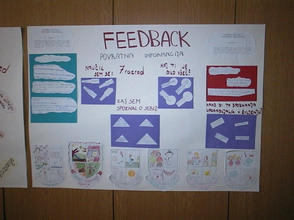 8. razred: Predstavi se – prodaja, "Miselni vihar" ob fotografiji, Življenjske črte – kaj mislim o samospoštovanju.