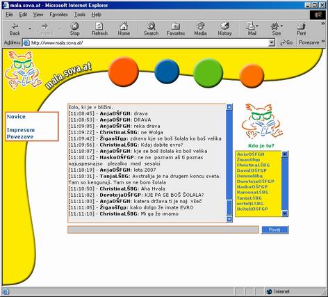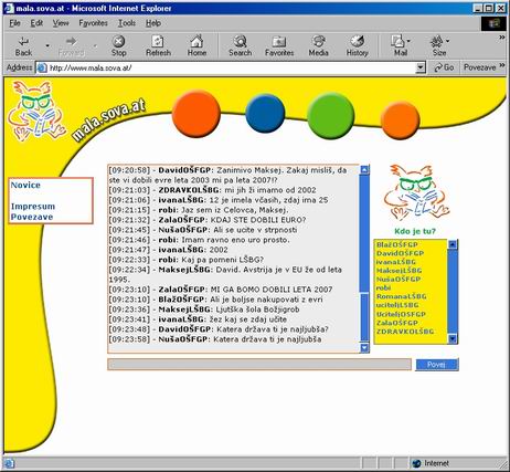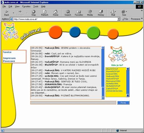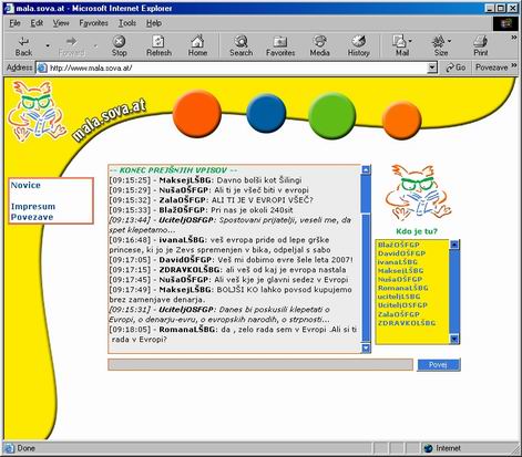 Klepet smo vršili preko spletne strani http://mala.sova.at