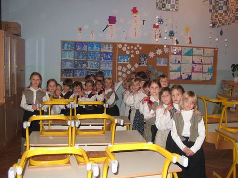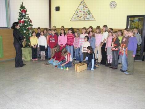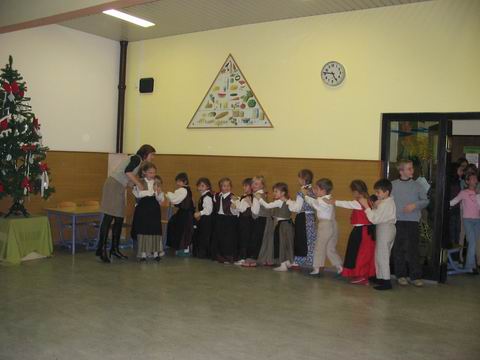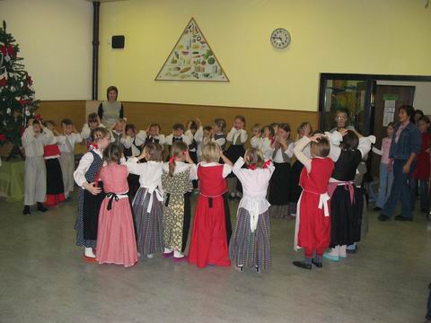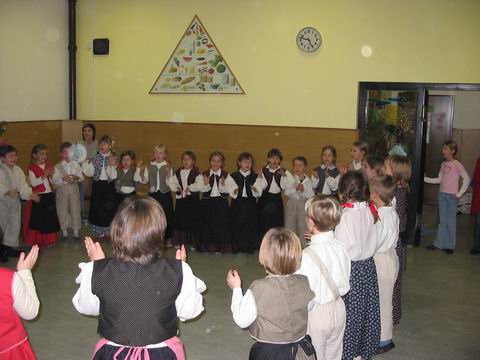 Folklorna skupina, recitatorji, glasbeniki, ... na sprejemu upokojenih delavcev OŠ Franja Goloba Prevalje decembra 2005...