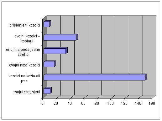 njene okolice smo zasledili šest osnovnih vrst kozolcev, sedmi je mešani tip z
