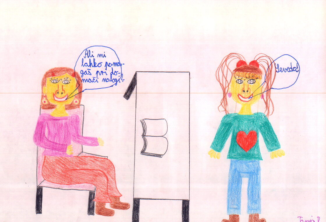Mislim, da je lepo, če imaš sošolko, ki ti pomaga razložiti nalogo ali kaj drugega, ko potrebuješ pomoč.