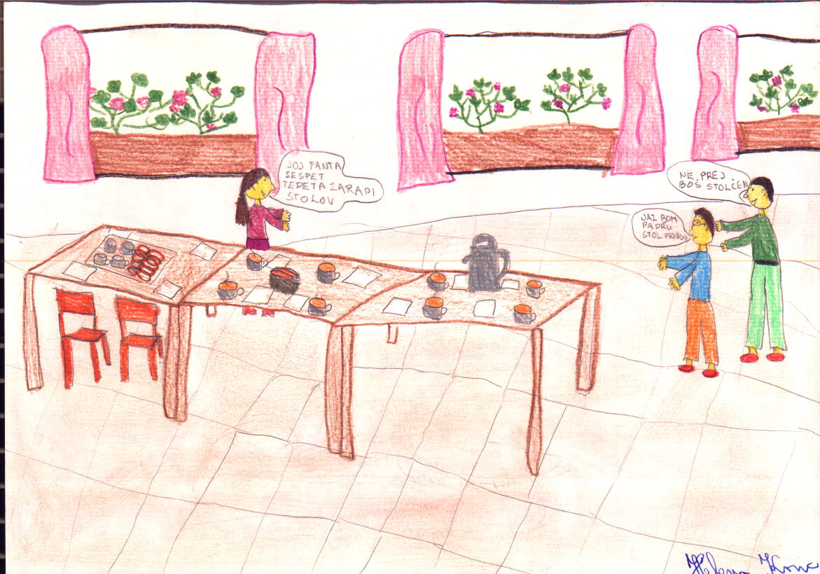 V podaljšanem bivanju smo se nekega dne pogovarjali in kuhali kompot. Potem je Nataša rekla, da naj gremo v razred.