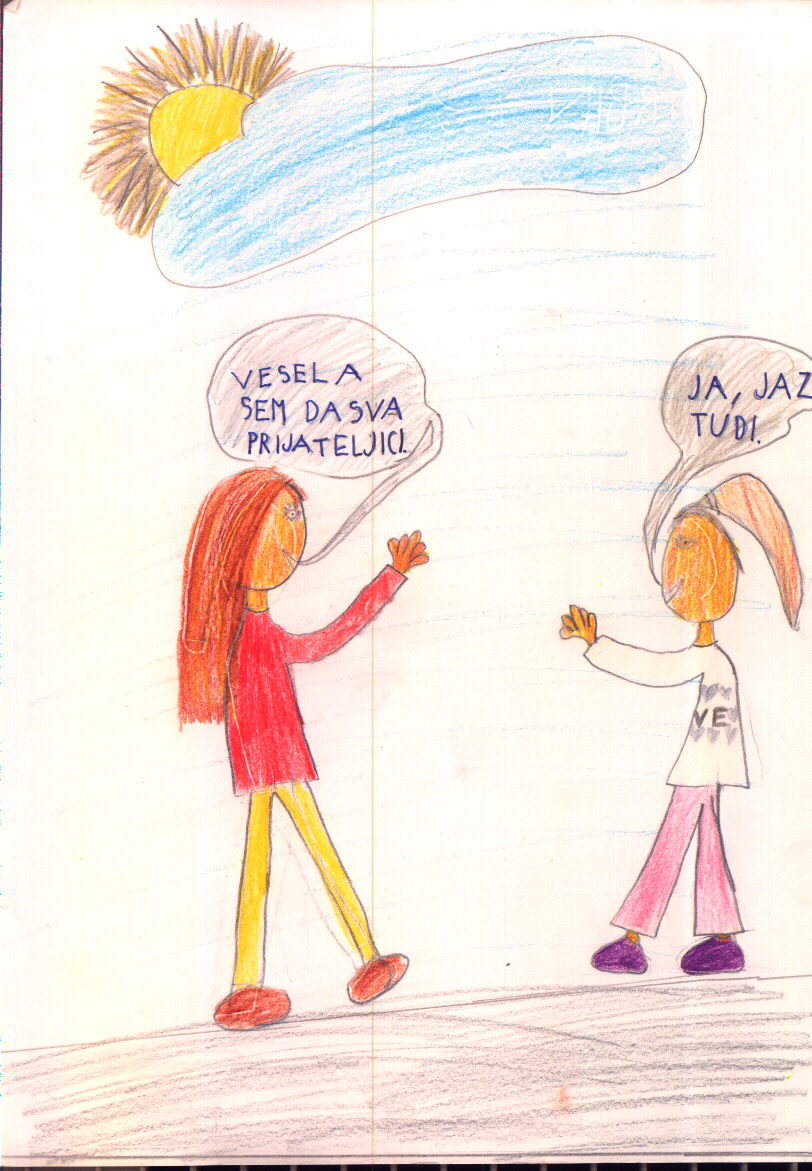 MATEJ IN JERNEJ STA MOJA PRIJATELJA, KER STA VEDNO VESELA IN PRIJAZNA. (DOMEN HRIBAR)