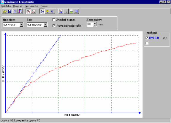 programa. Iz menija Merjenje/Upori in diode ali s klikom