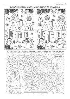 RAZVEDRILO 73 POiŠČi 10 RAZLiK. NATO LAHKO RiSBiCi ŠE POBARVAŠ. BOŽiČEK SE JE iZGUBiL. POMAGAJ MU POiSKATi POT DOMOV.