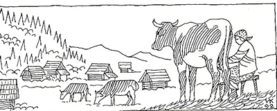 Nato so živino gnali na srednje in visoke planine. Jeseni so se v obratnem vrstnem redu vračali v dolino. | |