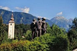 Narejen je v spomin na prvi vzpon na Triglav, ki so ga opravili domačini Lovro Willomitzer, Štefan Rožič, Matevž Kos in Luka Korošec 25. avgusta 1778. Možje gledajo Triglav. |
