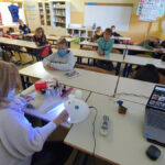 V 4. b razredu nas je tako najprej obiskala gospa Dragica Missia. Z veseljem nam je predstavila, kako poteka nega, okraševanje in nenazadnje tudi izdelava nohtov. Učence je navdušila z izjemno zanimivimi motivi in zanimivostmi. Potešila pa je tudi njihove radovedne glavice in jim odgovorila na zastavljena vprašanja. Seveda je poskrbela tudi za to, da so tudi otroci sami ustvarjali. Za opravljeno predstavitev se ji zelo lepo zahvaljujemo.