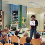 V ponedeljek, 19. 9. 2022, smo v naši knjižnici obeležili dan zlatih knjig. Na ta slavnostni dan so prvošolčki postali člani šolske knjižnice, v dar pa so prejeli izvirno slovensko leposlovno delo Ide Mlakar Črnič, Kako sta Bibi in Gusti prezvijačila hrib. Na dan zlatih knjig se spominjamo dne rojstva in smrti slovenskega pisatelja Franceta Bevka. V knjižnici nas je obiskala pisateljica, ilustratorka in pravljičarka Alenka Spacal, ki je na druženje s prvošolčki pripeljala pisano druščino svojih knjižnih junakov. Odslej so tudi v naši knjižnici učencem na voljo njene avtorske slikanice Fižolčica beži pred fižolovo juho, kako ti je ime?, Modre ptičje misli ter (še topla iz tiskarne) Plastelinčica in časopis.
