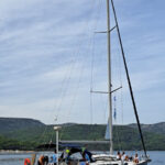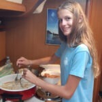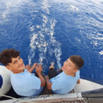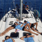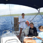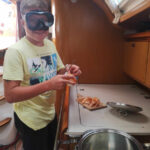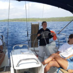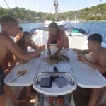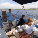 Danes je nedelja in ko smo se zbudili so fantje najprej šli na WC, Elli in Laurena pa sta nam naredile zajtrk. Nato nam je naš skiper razložil, kako kaj deluje na jadrnici, da smo nato lahko odpluli. Med tem ko smo pluli sta se Luka in Žan izmenjavala za krmarjenje barke, mi ostali pa smo med tem uživali in se sončili na sprednjem delu. Šola nam prav nič ne manjka. Nato smo prispeli v zaliv kjer smo se odpeljali z napol praznim supom na obalo polno morskih ježkov. Nato so se fantje odpeljali nazaj, nas pa so pustili na kopnem, vendar so nato vseeno prišli po nas. Pripravili smo malico in potem smo še malo plavali in se sončili. Potem je bil čas da se odpeljemo v zaliv skupaj z drugimi jadrnicami kjer bomo spali. Vivi je bilo dolg čas zato se je odločila da bo Žanu in Žigi naredila modno preobrazbo in ju prisilila da sta hodila na okrog po marini vsa na lišpana. Zdaj je večer in na sprednjem delu barke se igramo »red door-yellow door«.