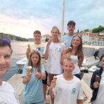 Danes smo se zbudili precej zgodaj in zelo hitro pripravili zajtrk, saj se nam je mudilo na skupno regato jadrnic, bilo jih je kar 95. Glavna barka je imela zvočnike, ki je predvajala poznane pop skladbe. Vsi udeleženci so plesali na premcu jadrnice. Dvignili smo svojo zastavo in odprli jadra. Vreme je na žalost bilo oblačno in občasno deževno. Po regati smo odpluli proti Milni na Brač. Zaradi vremena so bili veliki valovi, posledično smo se usedli na rob jadrnice, kjer nas je voda popolnoma premočila. Ko smo prispeli v marino, smo se najprej odpočili in pojedli kosilo, ki sta z inovativnimi pripomočki pomagala skuhati naša fanta. Potem smo šli na sladoled in igrali odbojko. Ko nam je žoga padla v morje, je Žan žrtvovalno »skočil« (potisnili smo ga) v vodo in rešil žogo kar trikrat. Ob koncu dneva smo pekli palačinke, katere je Viva profesionalno obračala. Nato smo šli spat. Se slišimo jutri.