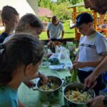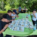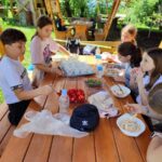Ko smo prispeli na Plački vrh, smo se razdelili v tri skupine. Fantje so pripravili narezke, druga skupina je pripravila makaronovo solato s tuno in zelenjavo, tretja skupina pa smo pripravili sladico s chia semeni in jagodami.