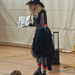 Našim bralkam in bralcem smo pripravili prijetno presenečenje, saj smo v goste povabili Mavrično čarovnico (Vesna Ina), ki jih je povabila v zgodbo o zmečkanem srcu. Zmečkano srce je knjiga, ki nas lahkotno pripelje do globoke resnice o tem, da tudi besede bolijo. Besede, ki so grde, zlobne in žaljive. In zdravilo? Otroci so se naučili, da se vsemu slabemu protiutež zmeraj najde v dobroti in srčnosti. Ob koncu prireditve so skupaj z Mavrično čarovnico zaprisegli z naslednjimi besedami: »Z roko na svojem srcu, slovesno prisegam, da bom od danes naprej uporabljal prijazne besede, da bom prijazen do ljudi in se bom po svojih najboljših močeh trudil svet narediti lepši.« In lepše nam je bilo …