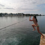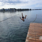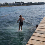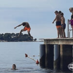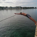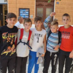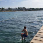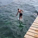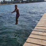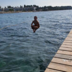 Tudi danes so nas prebudili zvoki pesmi “Vem, da danes bo srečen dan”. Po obvezni jutranji telovadbi in zajtrku smo se na plaži pomerili v skokih s pomola. Matic in Maša, naša nova učenca, sta povedala, da so ju njuni sošolci lepo sprejeli. Maša se dobro počuti v družbi novih prijateljic, Maticu pa je bilo od vsega najbolj všeč to, da je s sošolci poleg vseh aktivnosti lahko igral tudi nogomet. Zadnji večer smo zaključili v discu, kjer smo se zabavali in plesali ob naših izbranih glasbenih željah, ki jih je za nas vrtel učitelj Gregor.