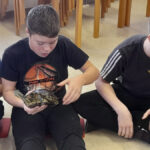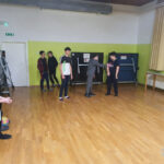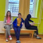 Po razburljivi vožnji do našega začasnega domovanja v CŠOD Vojsko smo si z zanimanjem ogledovali in spoznali naše “sotrpine” v šoli v naravi, štajerske osmošolce.