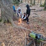 Po skoraj štiriurnem sedenju na avtobusu in potem, ko je naš šofer neustrašno zvozil vse nevarne ovinke, smo prispeli na Vojsko. Eni bolj, drugi manj, smo se sprijaznili s strogimi domskimi pravili in se nastanili v sobe. Po odličnem kosilu smo popoldan in večer preživeli v gozdu. Med postavljanjem bivakov, nas je kot naročeno ujela kratka nevihta, da je bila izkušnja še bolj pristna. Utrujeni od nočnega pohoda po razgibanem terenu, smo popadali v postelje.