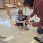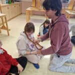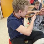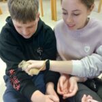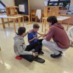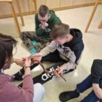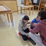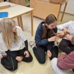 Danes smo se prebudili v krasno sončno jutro. In kaj nam je prinesel predzadnji februarski torek? Ajevcem dolg pohod do hudournika, ki so ga uspešno premagali tudi tisti, ki so ponoči bolj malo spali. Bejevcem pa trening nordijske hoje, prostega plezanja po steni in igranje z roboti. Da bo fer za vse, se bodo današnje dopoldanske aktivnosti ponovile tudi jutri, le da se bosta razreda zamenjala. Tako se je ponovil tudi današnji popoldan v gozdu ob raziskovanju rastlinskega sveta, postavljanju bivakov in obisku Snežene jame, za katerega se strinjamo, da je bil najbolj kul in adrenalinski. Po večerji se bomo družili ob nagajivih igrah in, ko bo čas, verjetno spet popadali v postelje.